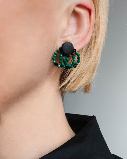 Malachite Bead and Leather Earrings
